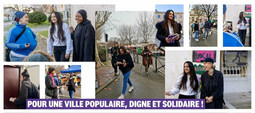 - au quotidien : un porte à porte avec les habitant.e.s de tous les quartiers, en équipe de deux ou trois, avec des documents et une envie de discuter, dates à voir avec les volontaires.