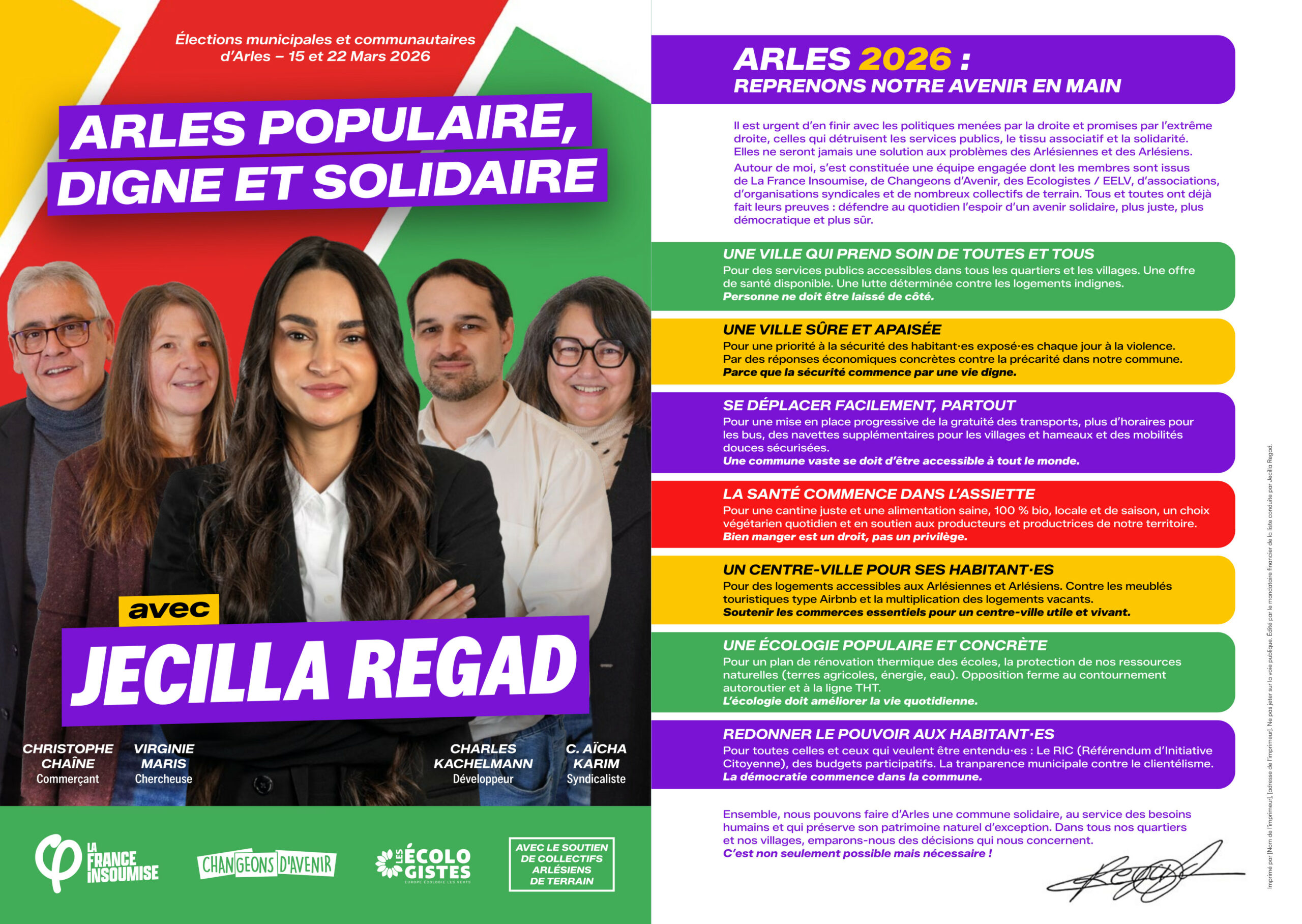 Nous partageons sur cette page l'information concernant la campagne pour les élections municipales d'Arles 2026.